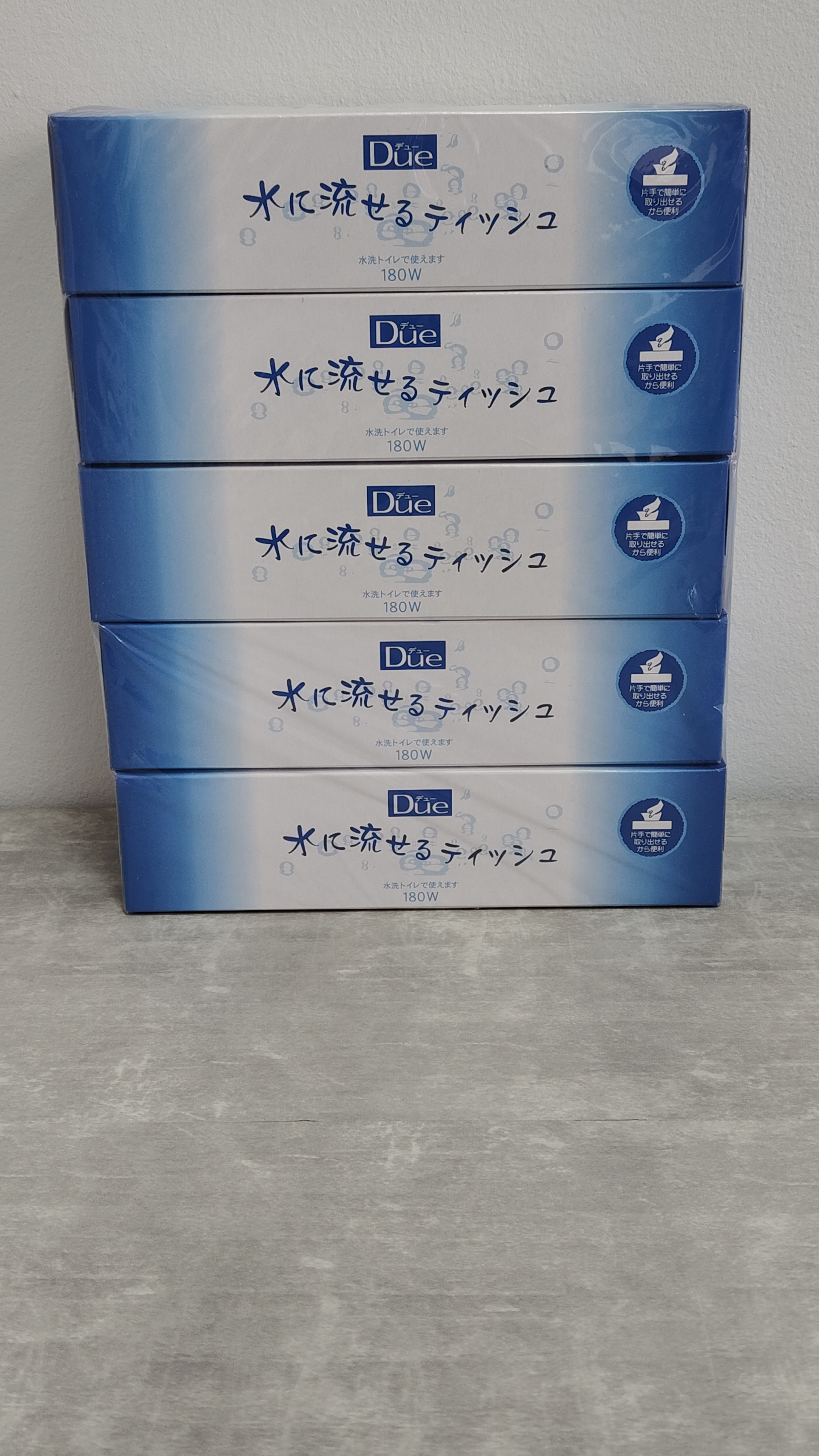 Ideshigyo Премиальные двухслойные мягкие бумажные салфетки "Due" (водорастворимые / произведены на воде с горы Фудзи), 180 шт. х 5 пачек