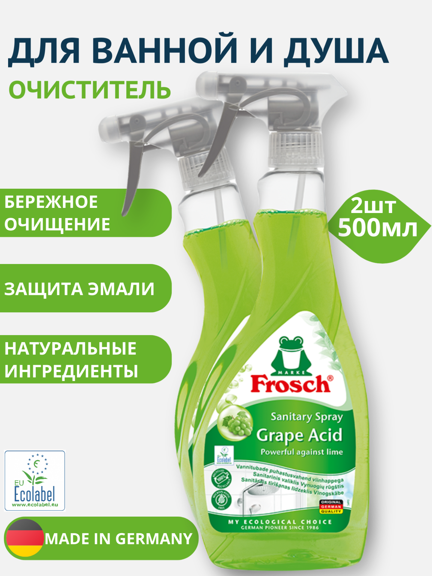 НАБОР Фрош Очиститель для ванны и душа виноград 500 мл 2шт