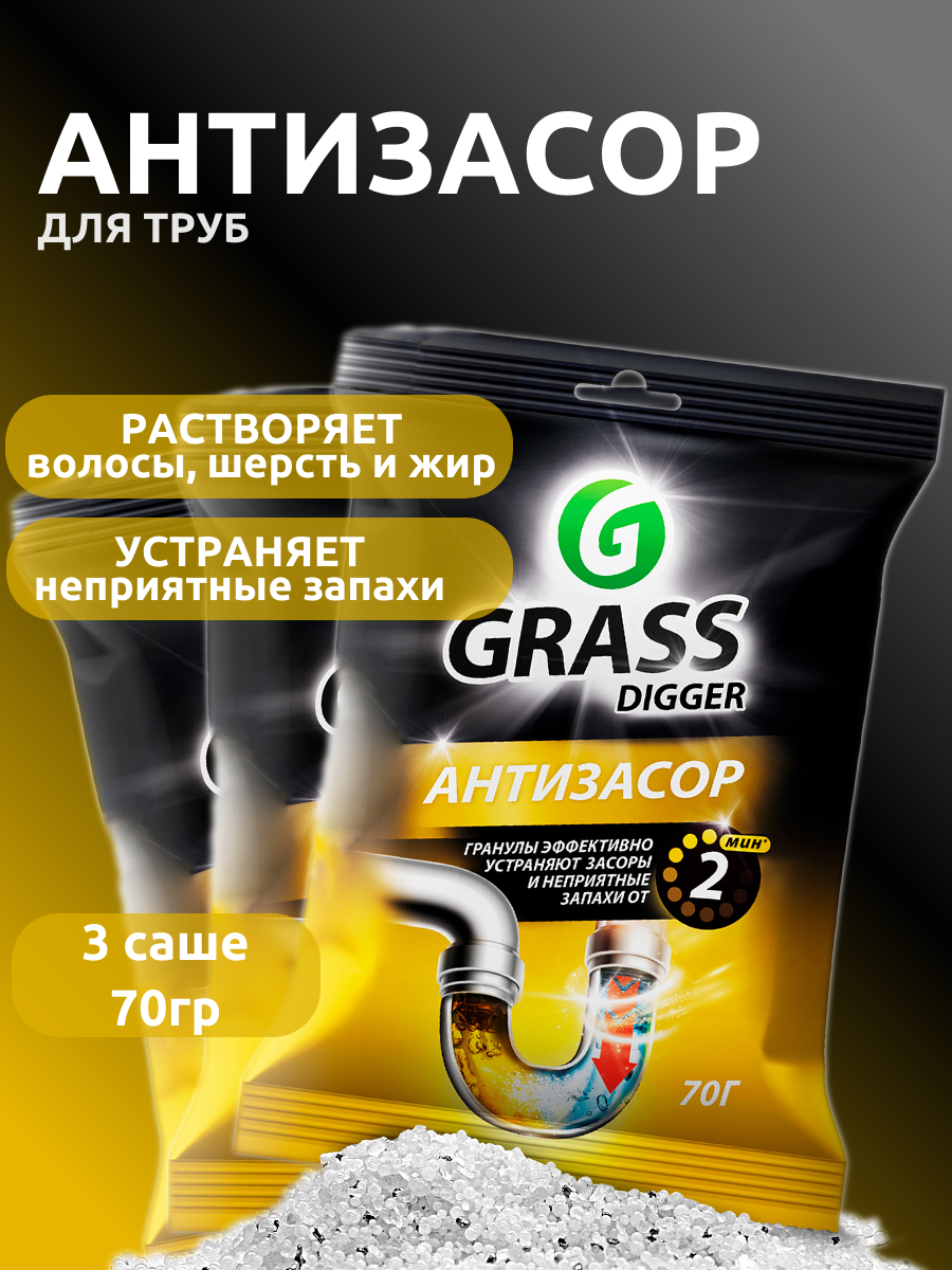 Grass НАБОР Средство для прочистки труб "DIGGER-Granules" саше 70 гр 3 штуки ТРИ ШТУКИ