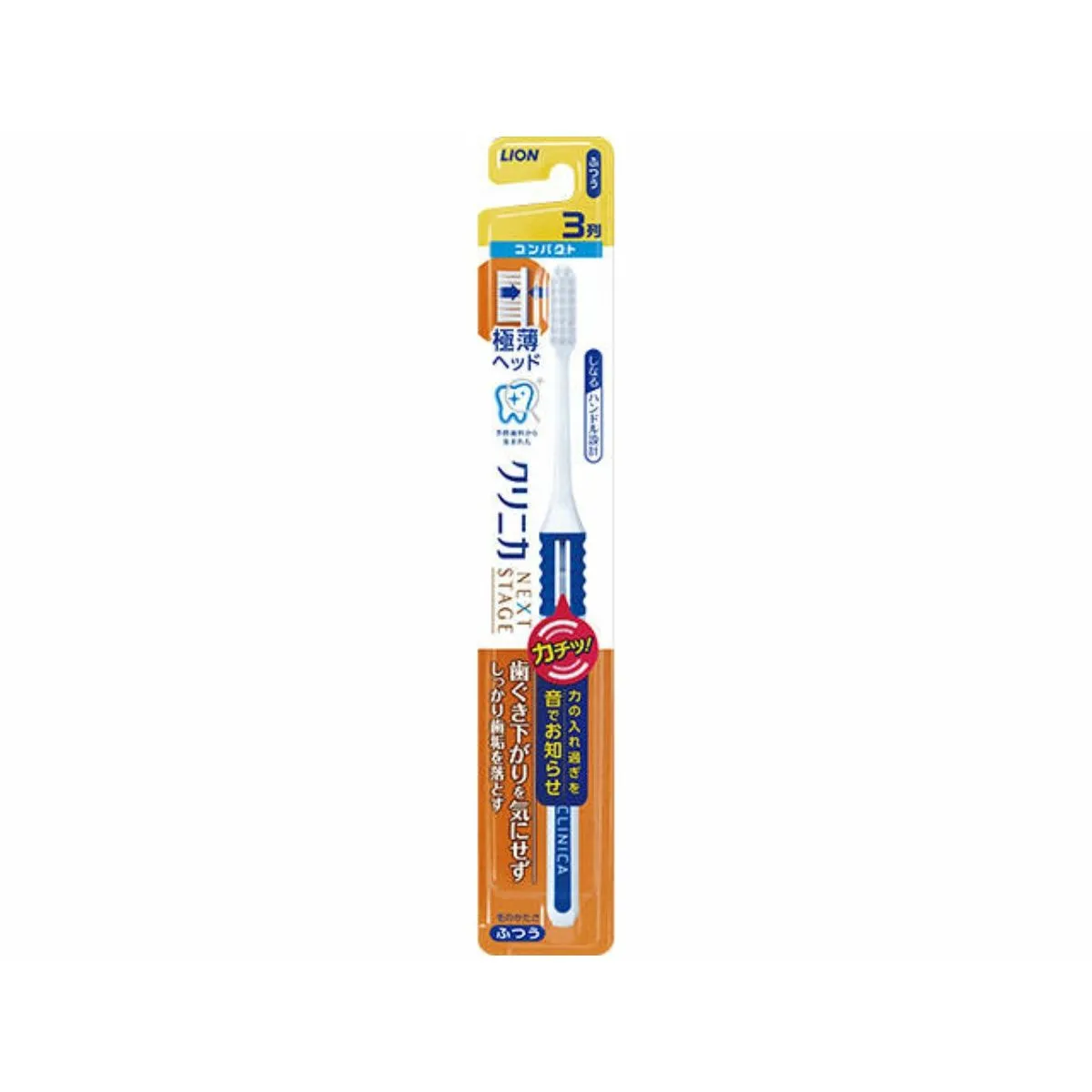 LION КОМПАКТНАЯ 3-х рядная зубная щётка "Clinica Next Stage" с ПЛОСКИМ срезом и ГИБКОЙ ручкой для контроля надавливания на зубы и дёсны, средней жёсткости