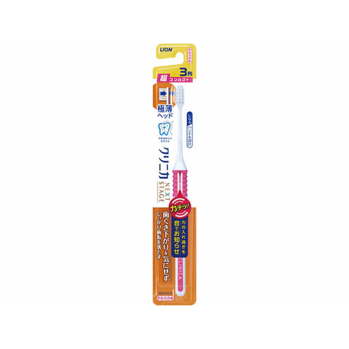 LION СУПЕРКОМПАКТНАЯ 3-х рядная зубная щётка "Clinica Next Stage" с ПЛОСКИМ срезом и ГИБКОЙ ручкой для контроля надавливания на зубы и дёсны, мягкая