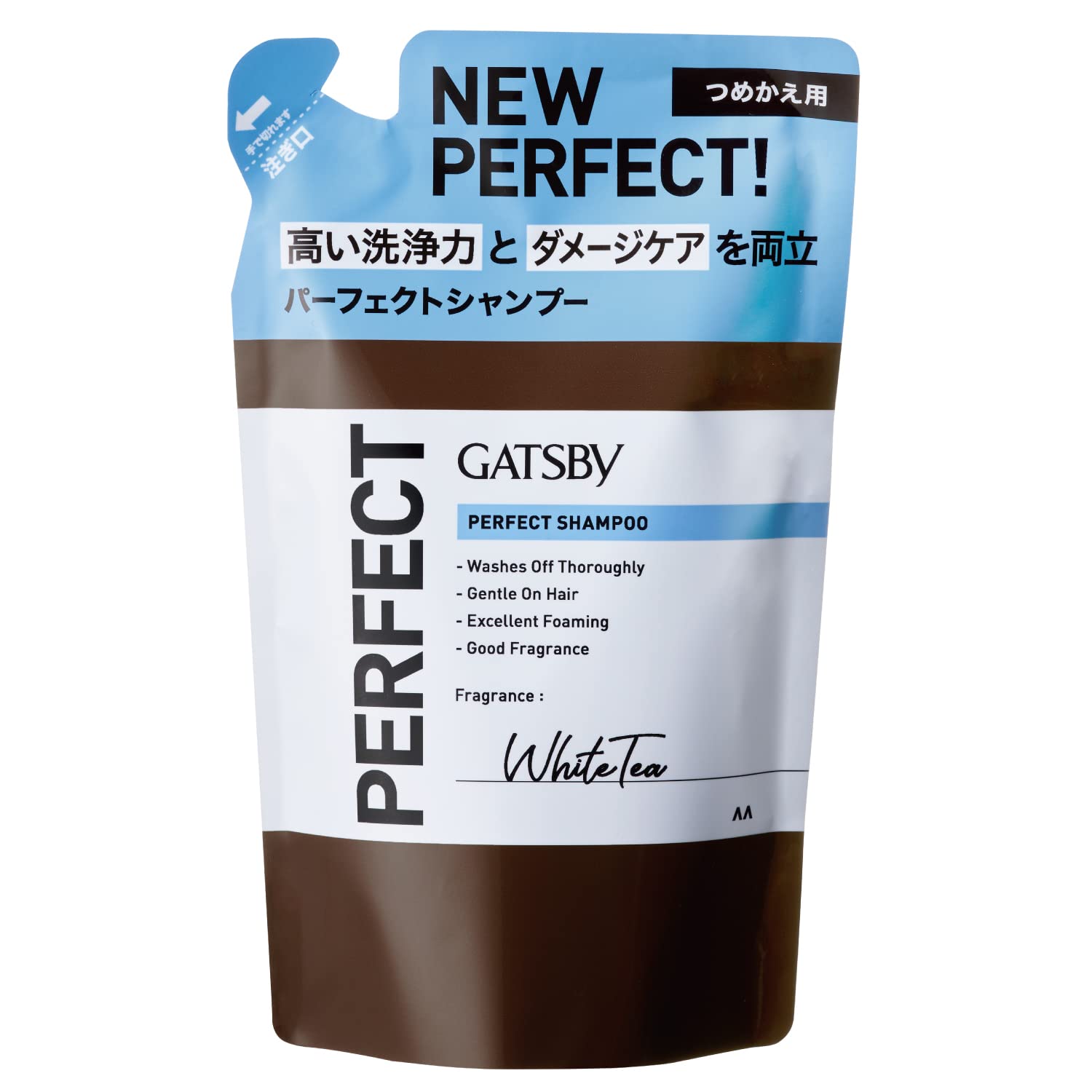 Mandom Мужской шампунь "Gatsby Perfect Shampoo" для двойной очистки кожи головы и удаления укладочных средств (аромат белого чая) 300 мл