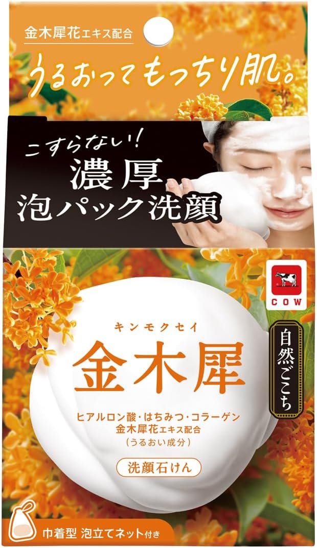 Cow Brand Очищающее мыло для лица с экстрактом османтуса, растительной плацентой, гиалуроновой кислотой и коллагеном «Shizen Gokochi» (с мочалкой) 80 г