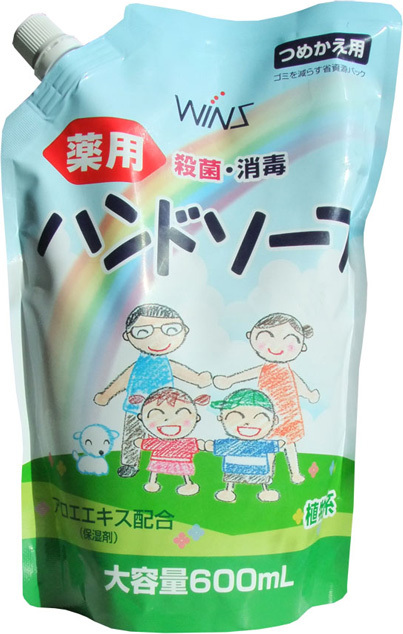 Nihon Wins Жидкое мыло для рук с восстанавливающим эффектом и экстрактом алоэ, 600 мл, мягкая упаковка