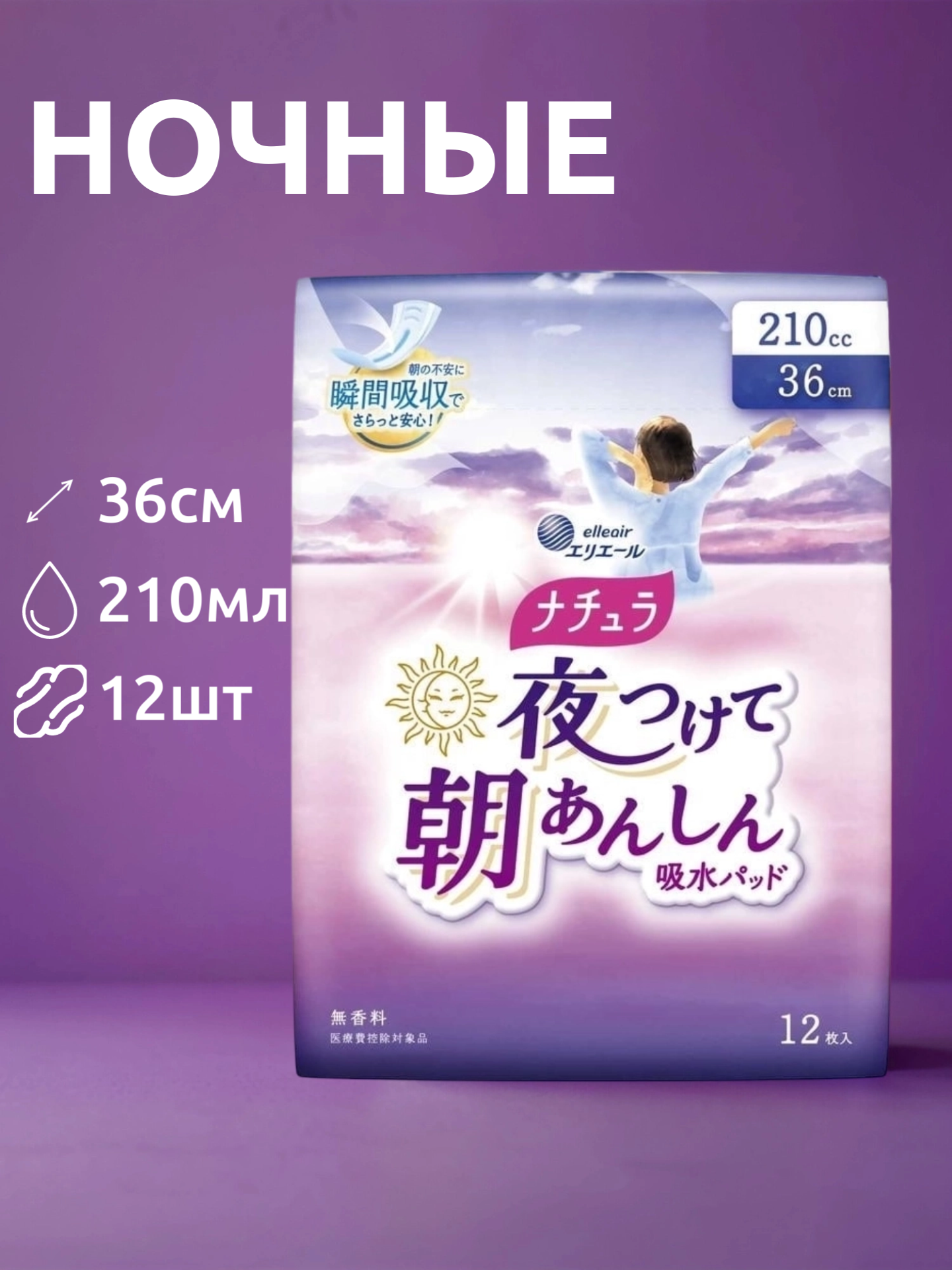 DAIO Супервпитывающие ночные гигиенические прокладки "Natura Long" для обильных выделений с мягкой поверхностью (лонг / 36 см / 210 мл) 12 шт.