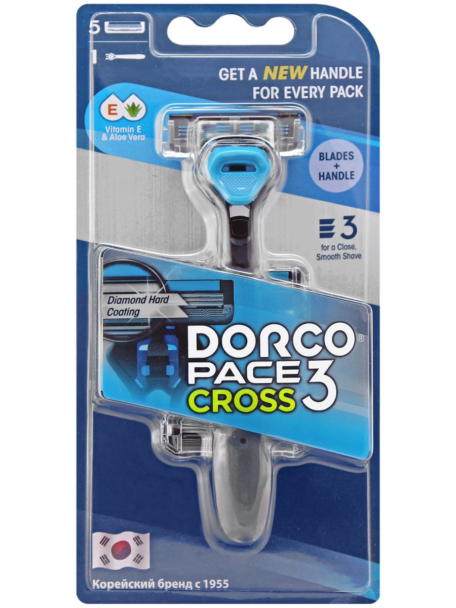 Dorco Pace CROSS 3 бритв. станок + (5 кассет CROSS) с 3 лезвиями, TRC 1005