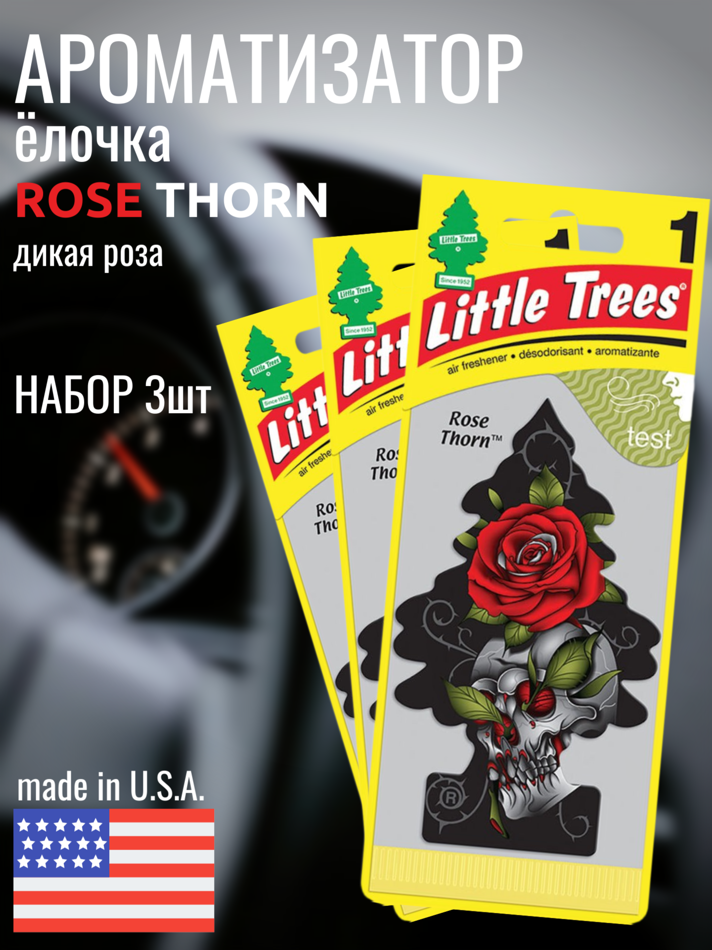 НАБОР LITTLE TREES Ароматизатор Ёлочка "Дикая Роза" (Rose Thorn) 3шт