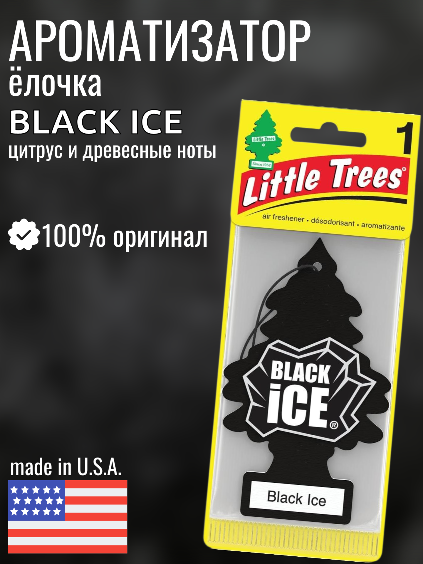 LITTLE TREES Ароматизатор Ёлочка "Черный лед" (Black Ice)