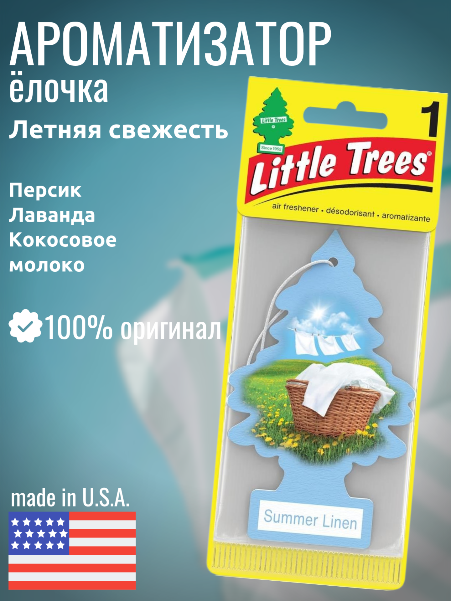 LITTLE TREES Ароматизатор Ёлочка "Летняя свежесть" (Summer Linen)