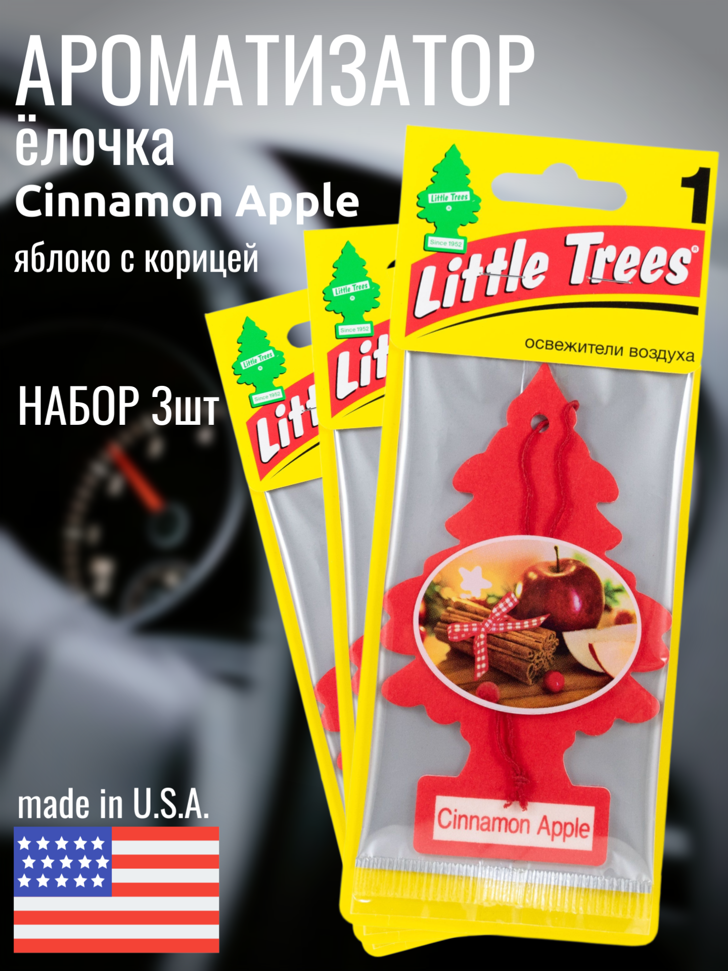 НАБОР LITTLE TREES Ароматизатор Ёлочка "Яблоко с корицей" (Cinamon Apple) 3шт