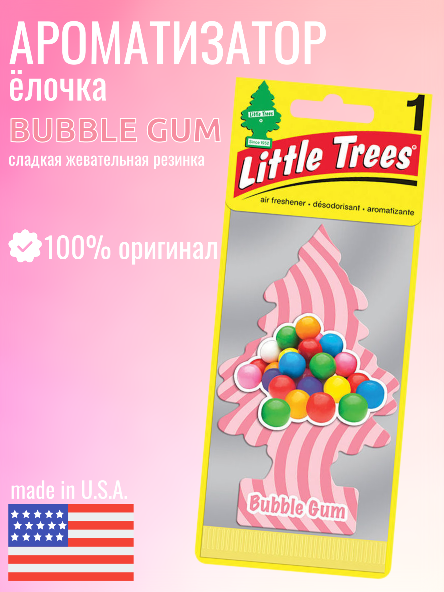 LITTLE TREES Ароматизатор Ёлочка "Бабл гам" (Bubble Gum)