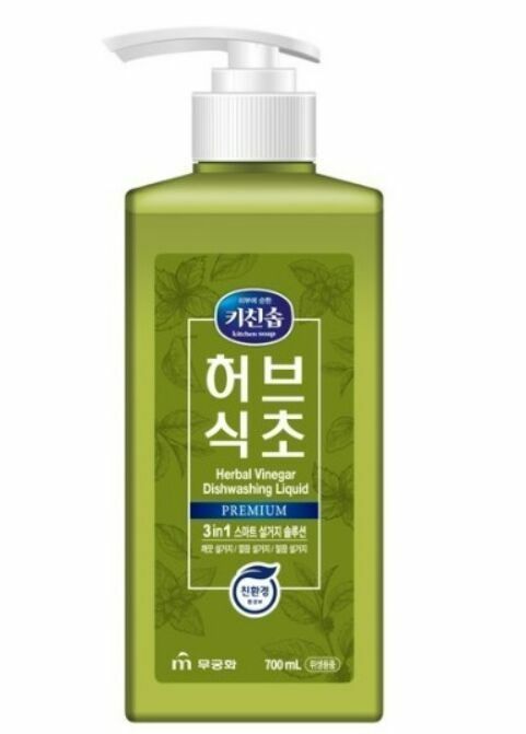 Mukunghwa Премиальное средство для мытья посуды, детских бутылочек, овощей и фруктов 3 в 1 «Травяной уксус» (с ароматом мяты) 700 мл