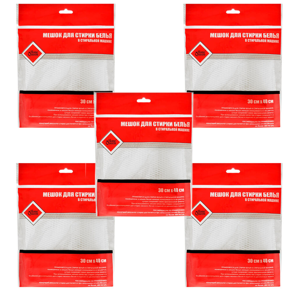 Набор Мешок для стирки белья "Home Queen", цвет: белый, 30 х 40 см 5шт
