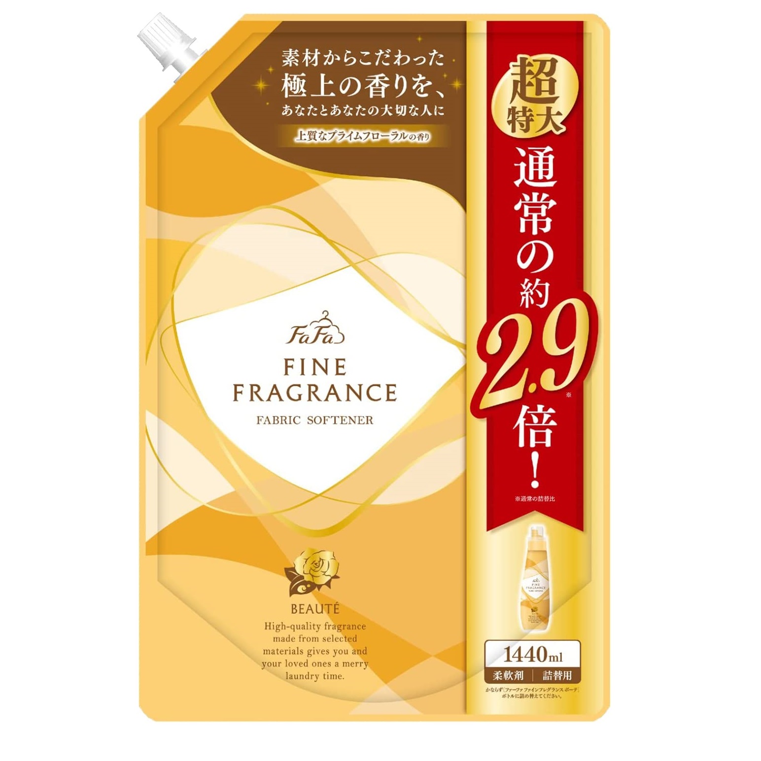 Nissan FaFa Антистатический кондиционер FaFa Fine Fragrance "Beaute" для белья с ароматом цветов, мускуса и сандалового дерева, мягкая упаковка с крышкой 1440 мл