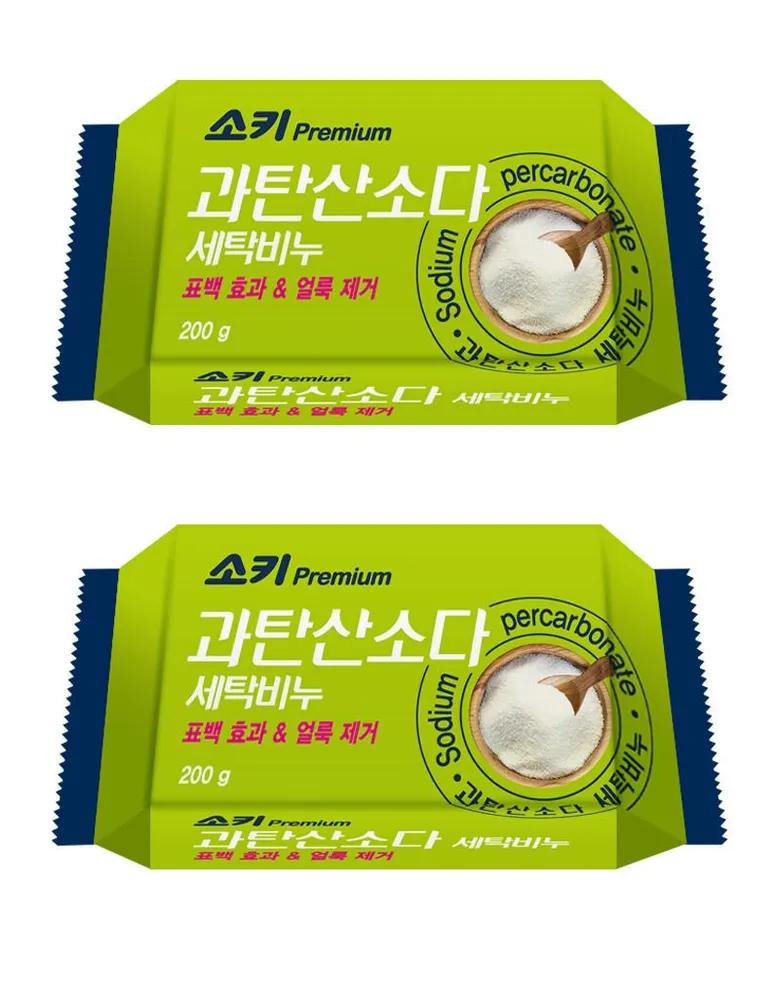 НАБОР Премиальное отбеливающее и пятновыводящее хозяйственное мыло Mukunghwa "Premium Baking Soda" с содой 200 г 2шт