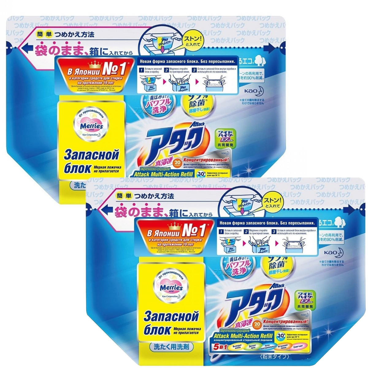 НАБОР Kao Attack Multi-Action Стиральный порошок , концентрированный, с кислородным пятновыводителем, запасной блок 0,72 кг 2шт