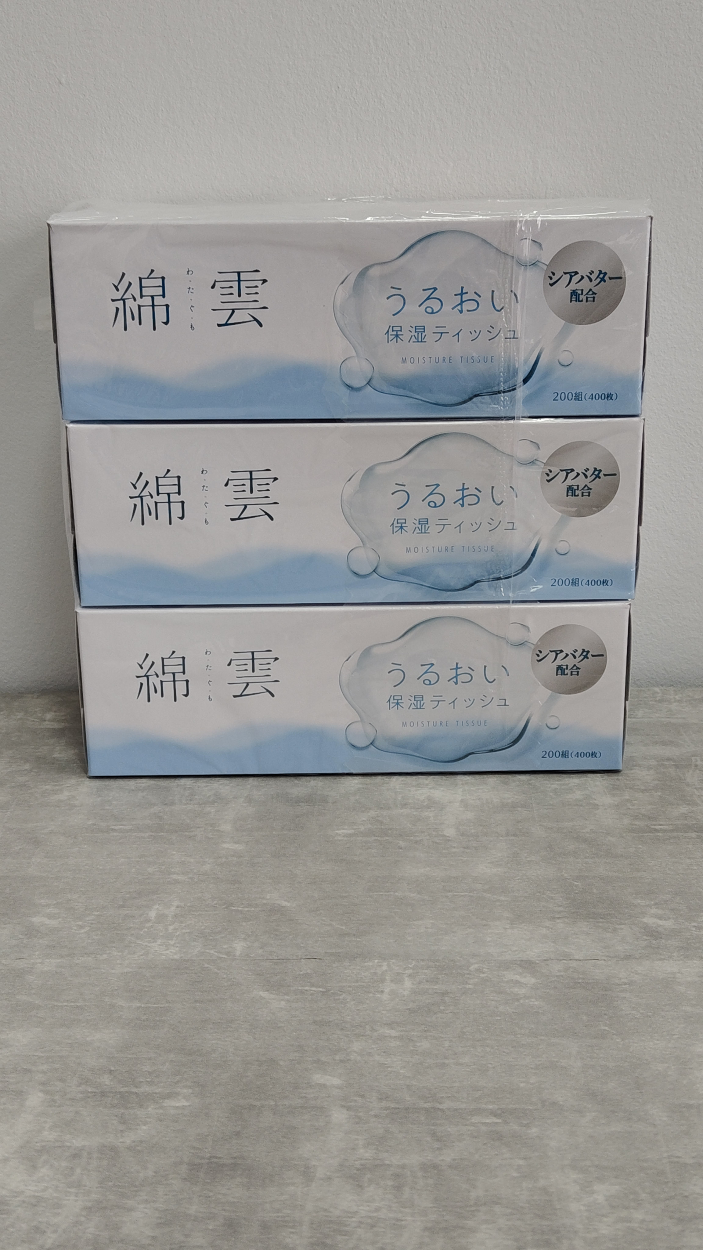 Ideshigyo Премиальные двухслойные особо мягкие бумажные салфетки "Watagumo" (с маслом ши / увеличенные / произведены на воде с горы Фудзи), 200 шт. х 3 пачки