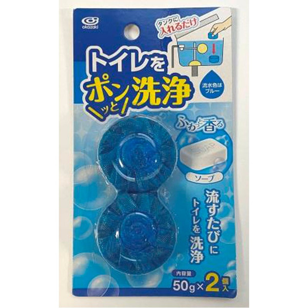 Okazaki Очищающая и дезодорирующая пенящаяся таблетка для бачка унитаза, окрашивающая воду в голубой цвет 50гр*2