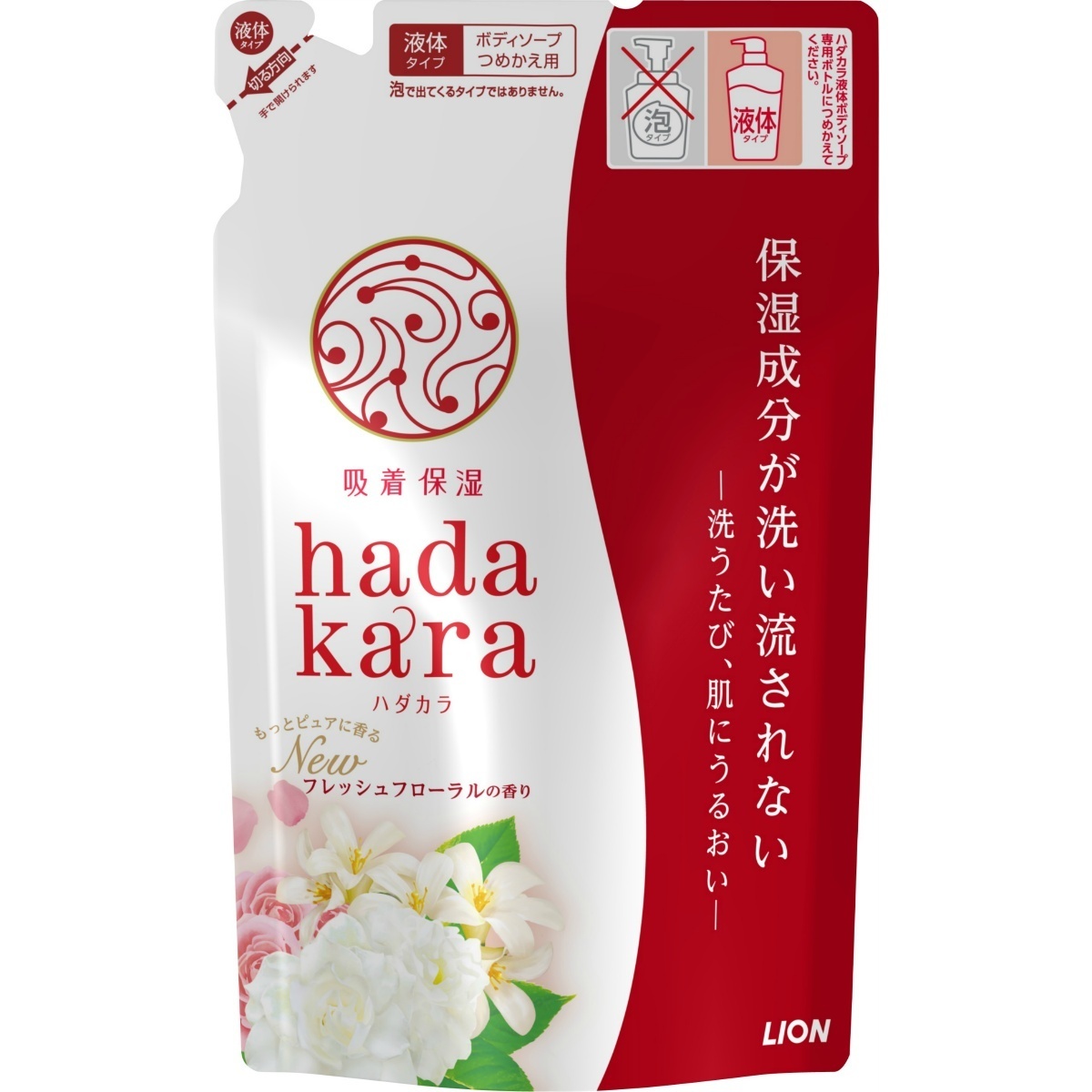 Lion Увлажняющее жидкое мыло Lion Hadakara для тела с ароматом изысканного цветочного букета, мягкая упаковка, 360 мл