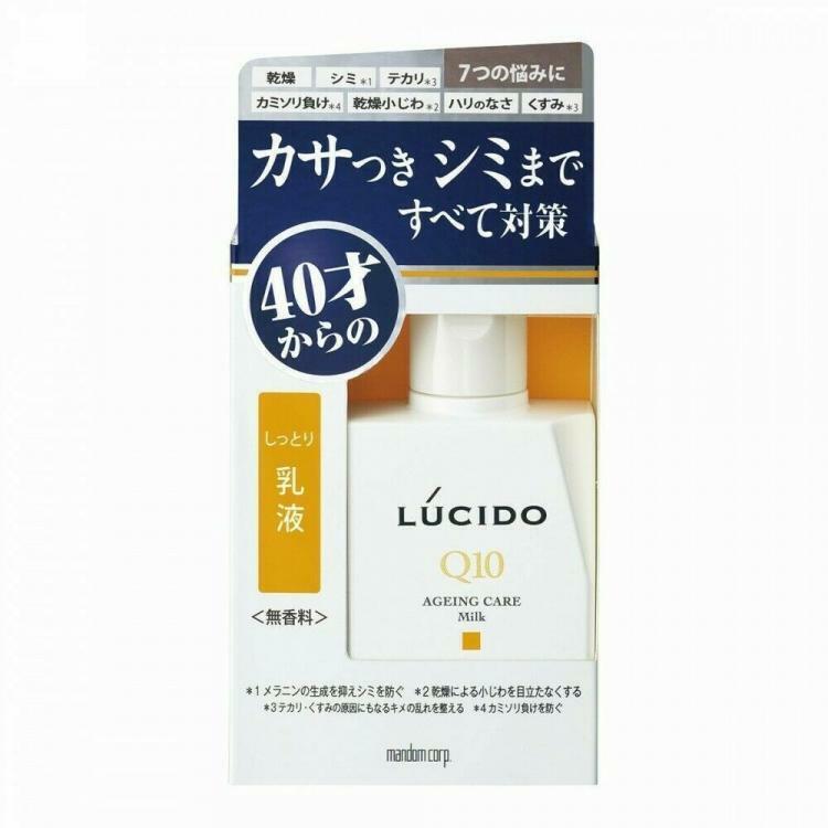Mandom Молочко Lucido Q10 Ageing Care Milk для комплексной профилактики проблем кожи лица для мужчин после 40 лет без запаха, красителей и консервантов 100 мл