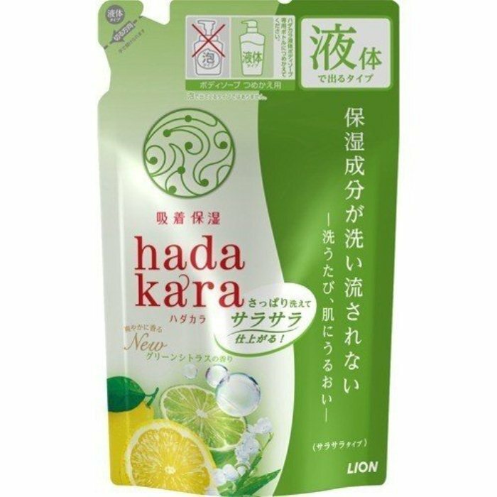 LION Увлажняющее жидкое мыло для тела "Hadakara" с ароматом зелёных фруктов (для жирной кожи) 340 мл, мягкая упаковка
