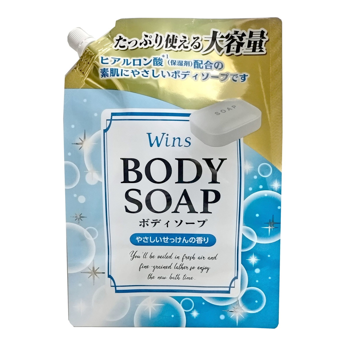 Nihon Detergent Крем-мыло "Wins Body Soap" для тела с гиалуроновой кислотой и богатым ароматом 900 г, мягкая упаковка с крышкой