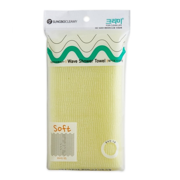 Sungbo Cleamy Мочалка для тела с плетением «Волна» и волокнами кукурузы "Eco Corn Shower Towel" (с жемчужным блеском, мягкая) размер 25 см х 100 см