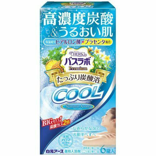 Hakugen Earth "HERS Bath Labo Premium COOL" Освежающая соль для ванны с повышенным содержанием углекислого газа, гиалуроновой кислотой и плацентой (с ароматами мяты, ананаса, плюмерии, вербены), 70 гр.* 6 табл.