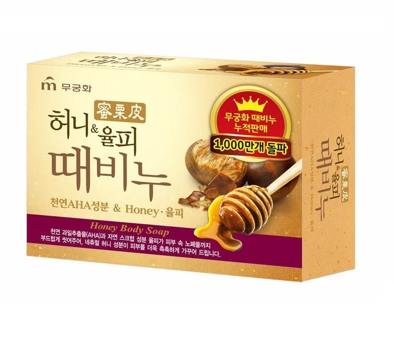 Mukunghwa Отшелушивающее и увлажняющее мыло для тела и лица с медом и скорлупой каштанов Honey Body Soap 100 г