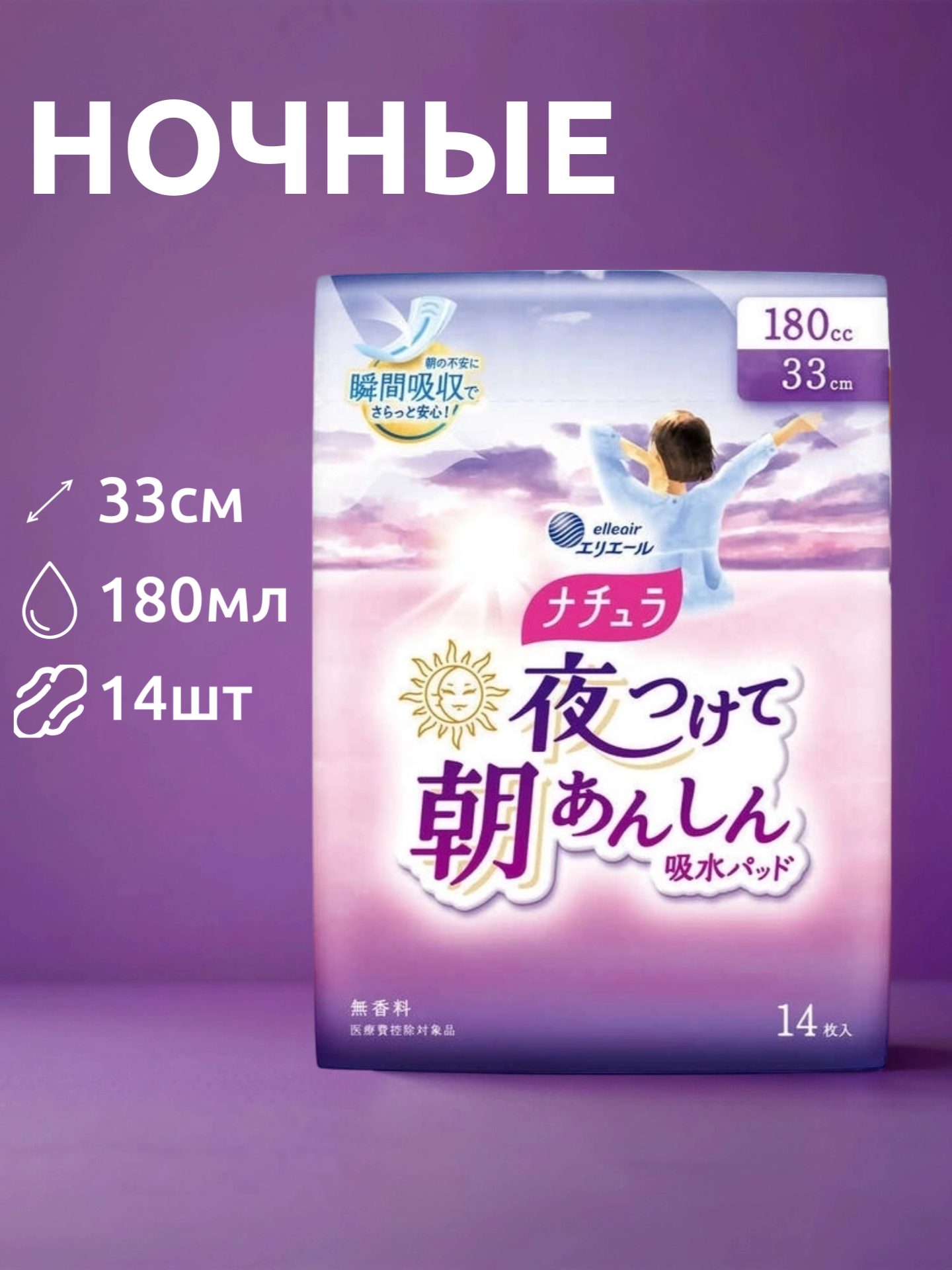 DAIO Супервпитывающие ночные гигиенические прокладки "Natura Mega" для обильных выделений с мягкой поверхностью (мега / 33 см / 180 мл) 14 шт.