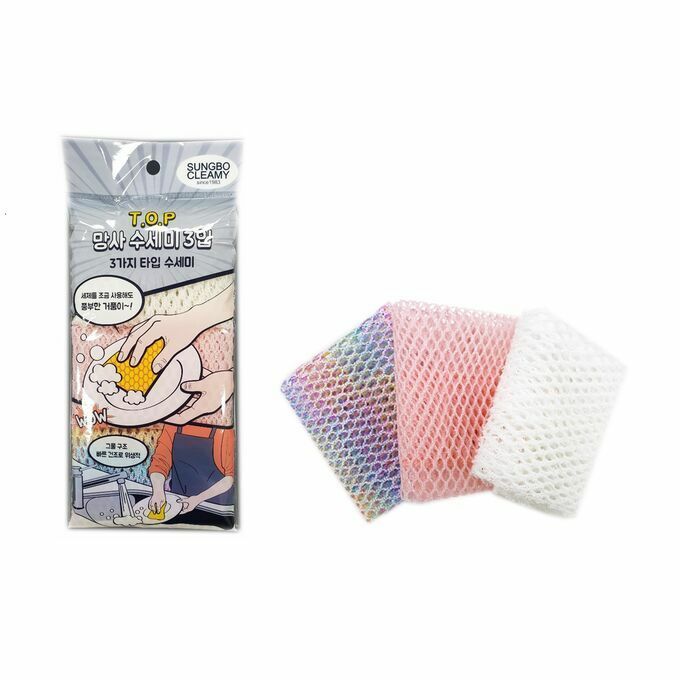 Sungbo Cleamy Мочалка-сетка для мытья посуды и кухонных поверхностей (мягкая, средней жёсткости, жёсткая) 3 шт.