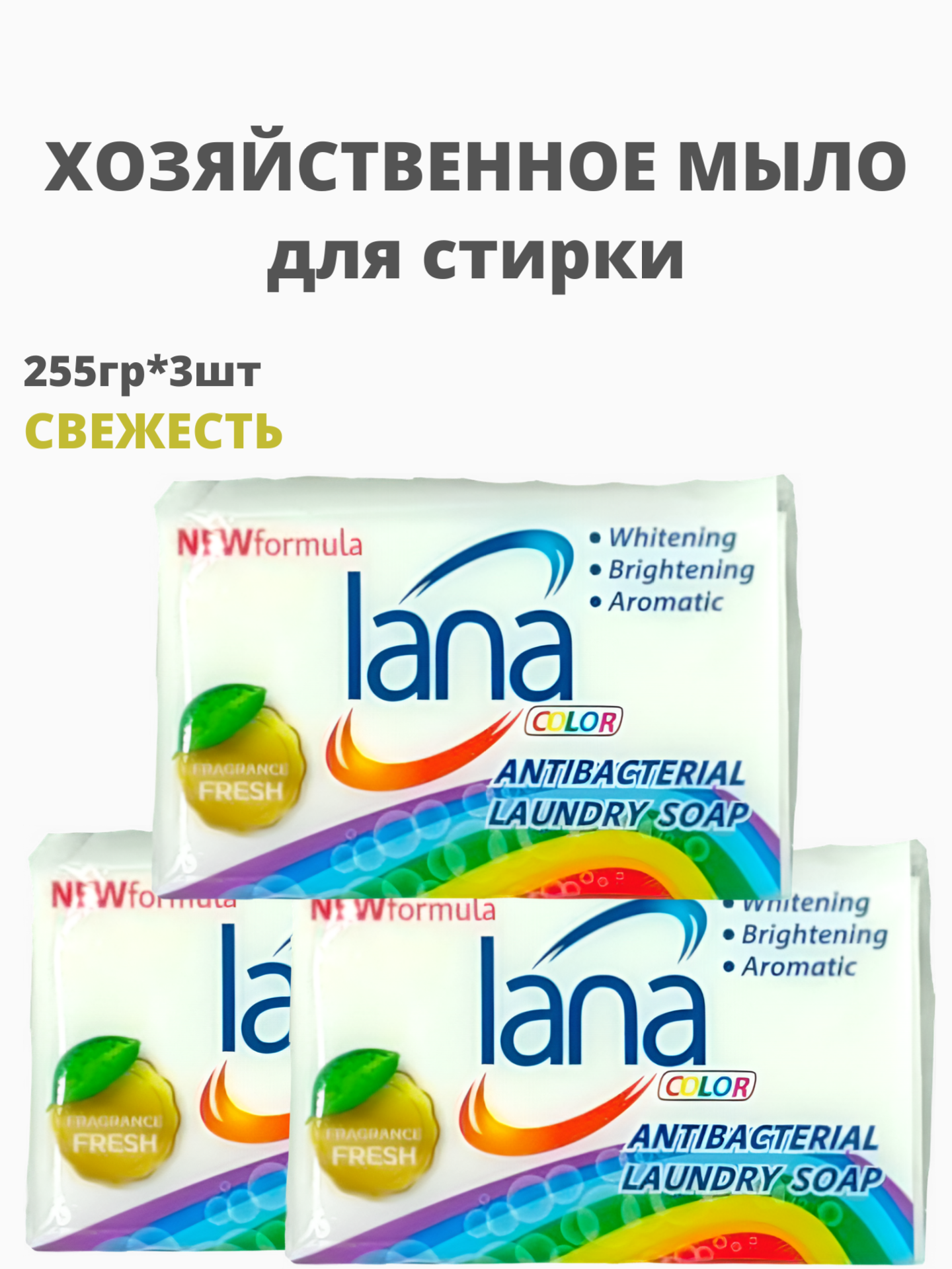 НАБОР LANA Хозяйственное мыло "lana" для стирки и застирывания (аромат свежести) 255 г 3шт