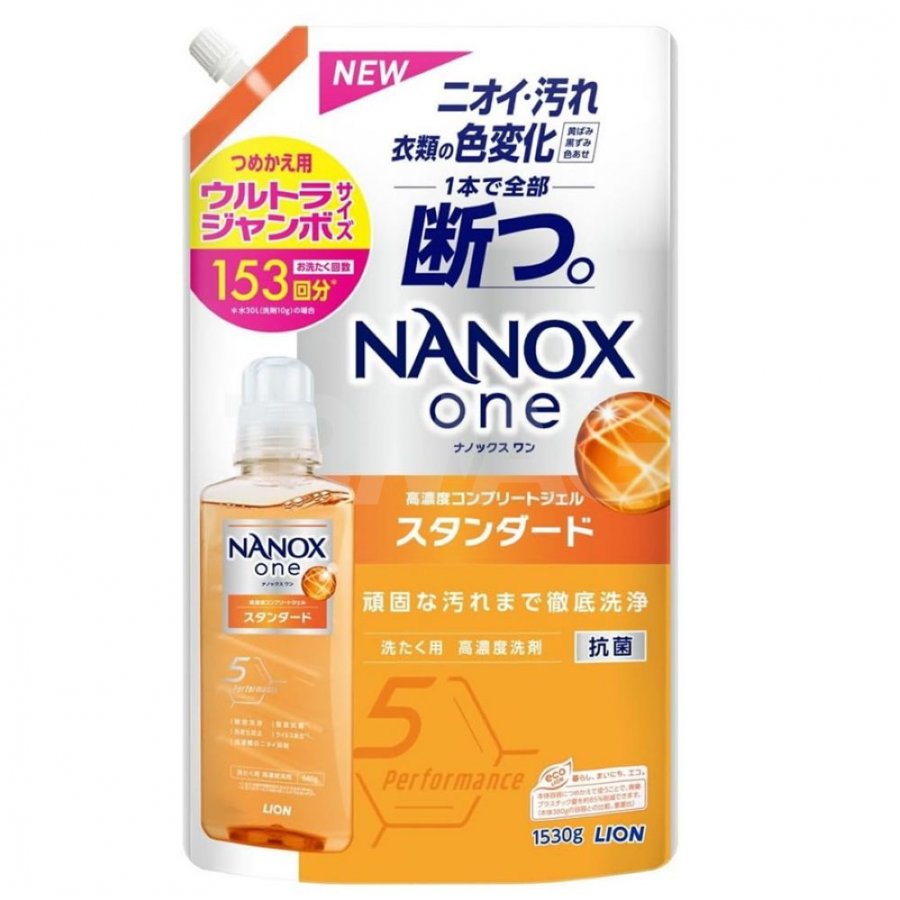 LION Жидкое средство "Top Nanox One Standart" для стирки (усиленное отстирывающее действие + сохранение цвета, суперконцентрат) 1530 г, мягкая упаковка с крышкой
