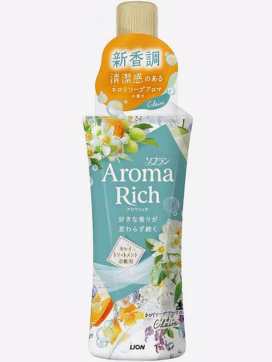 LION Кондиционер для белья "Клэр" (формула сохранения неизменного аромата и красоты тканей / с натуральными маслами "Aroma Rich Claire 258") 480 мл