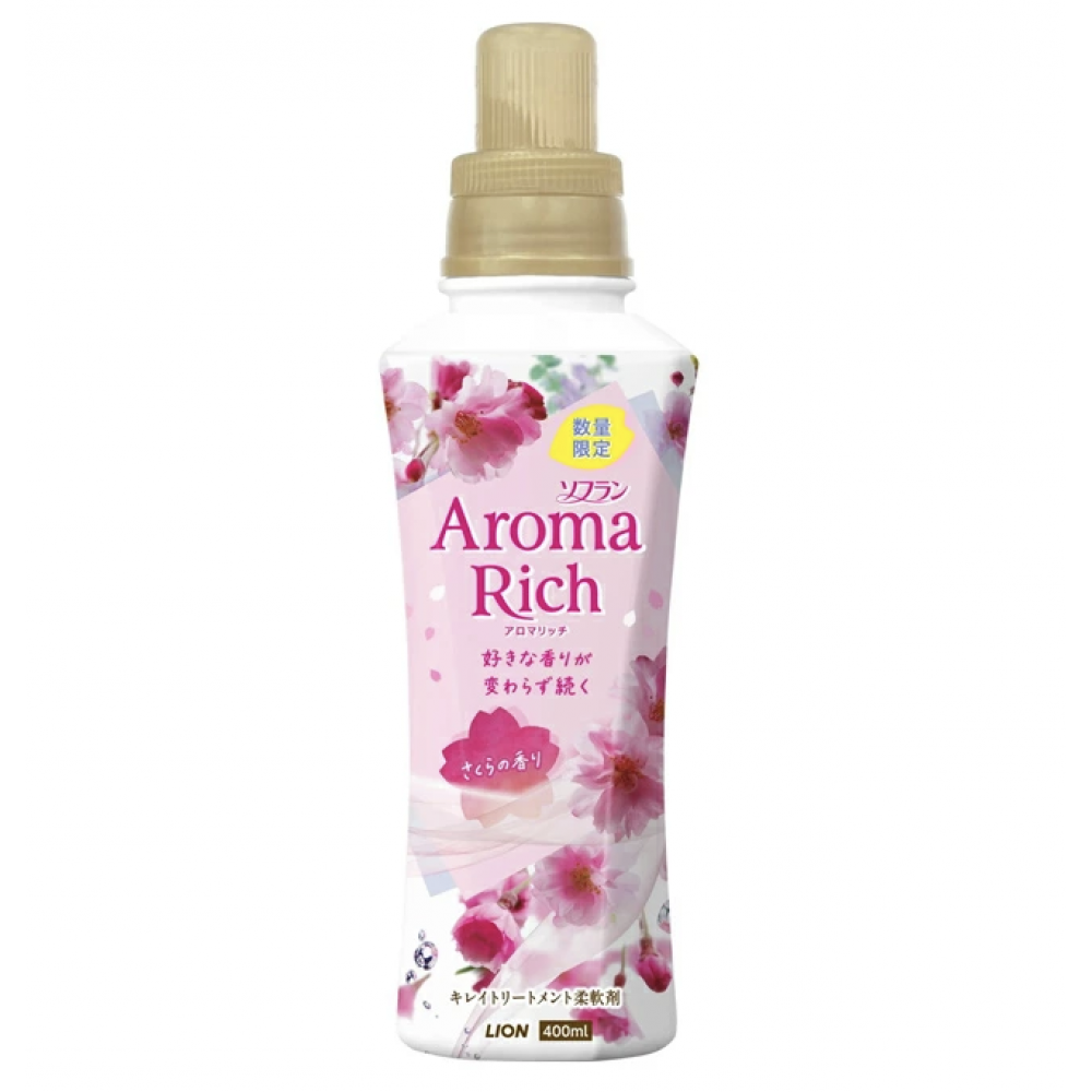 LION Кондиционер для белья "Сакура" (формула сохранения неизменного аромата и красоты тканей / с натуральными маслами "Aroma Rich Sakura 305") 400 мл