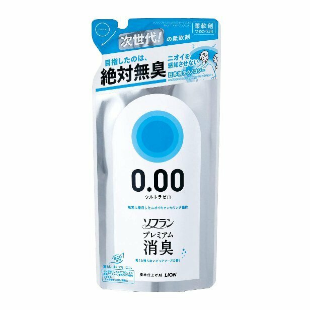 LION Кондиционер для белья "SOFLAN" (блокирующий восприятие посторонних запахов "Premium Deodorizer Ultra Zero-0.00" - аромат чистоты с нотой кристального мыла) 400 мл МУ