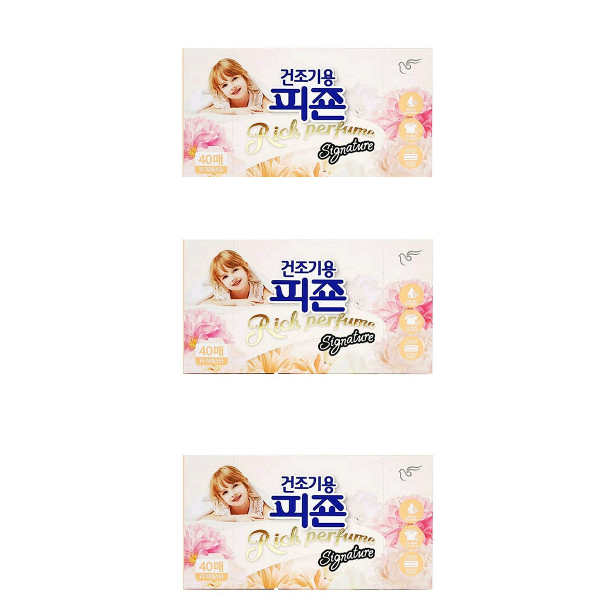 Набор Кондиционер для белья Pigeon Rich Perfume, аромат "Фиеста", салфетки для сушки белья в сушильной машине, 3 упаковки по 40шт